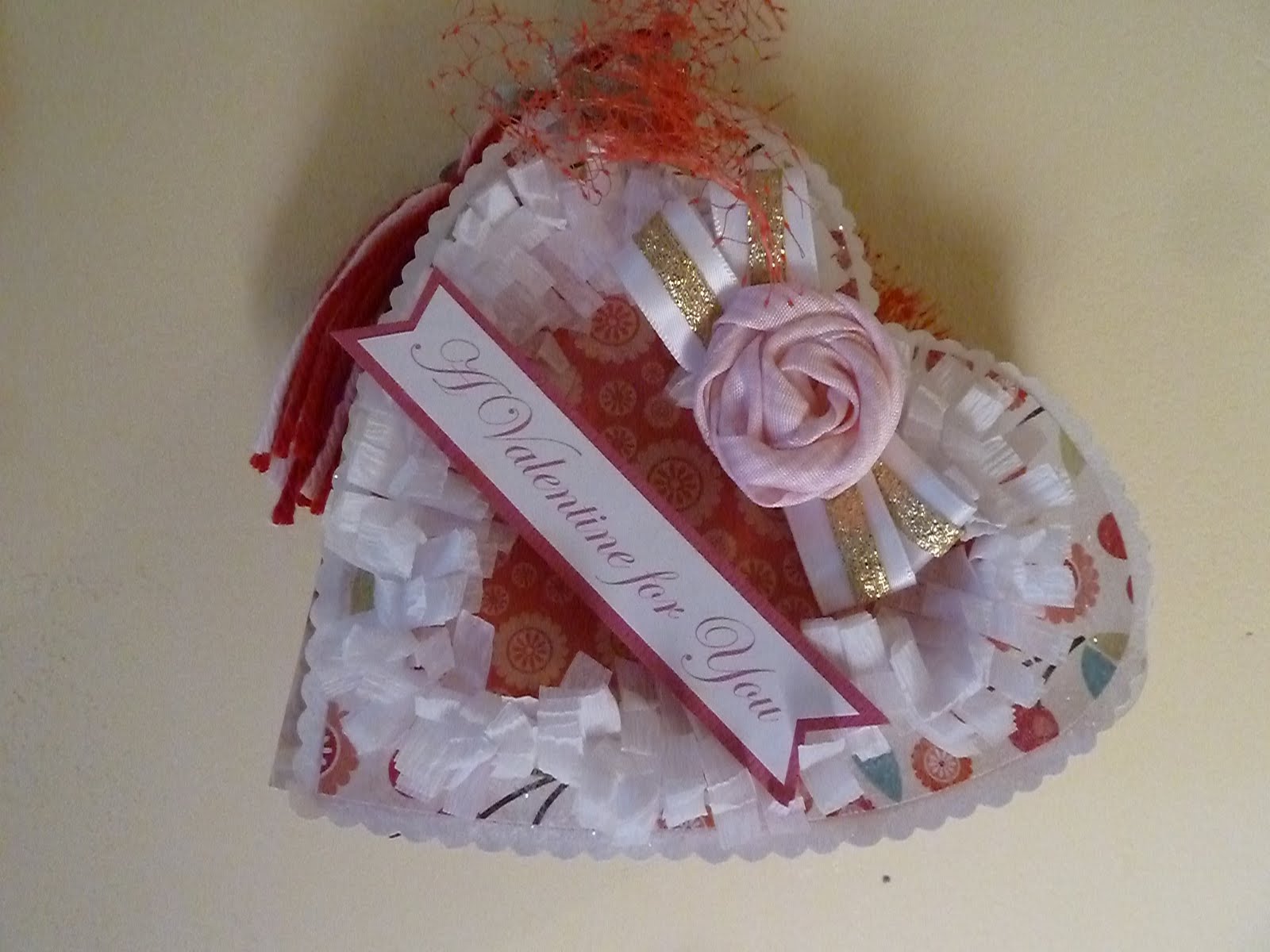 The next set of photos will be my pink candy album I got from Elizabeth. It was so much fun making all my little hearts to go in it. She is so crafty and sent all the supplies I needed to decorate them. I just had to use a few of my red letters and a few extras that I had. See if you can find the red netting from a bag of oranges I used! Oh what fun! Can you have too many exclamation points in a post? This last one is a card she included in the package. I trimmed it up and added it to my hearts. Next I will show some photos of my decorating around the house.